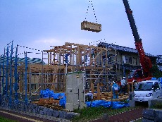この家はソーラーサーキット工法で建てるため他の家と違い屋根を二重に造る為(蔵の造りと同じ考え)上棟から一週間弱での中間検査は少し厳しかったですが何せ工期が無いので致し方無いところです。