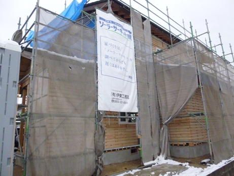 で、北山、南山共に稜線が見え難いほど白く霞んでいます。