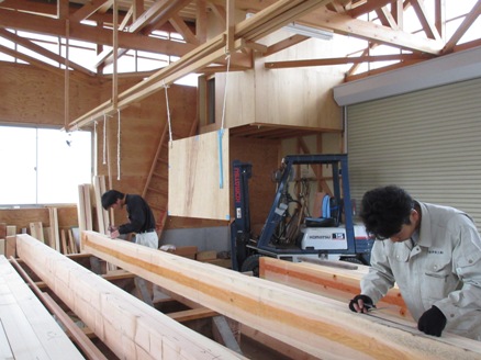 命綱です、目の締まった強度のある材を出して下さい」と材を吟味しています。